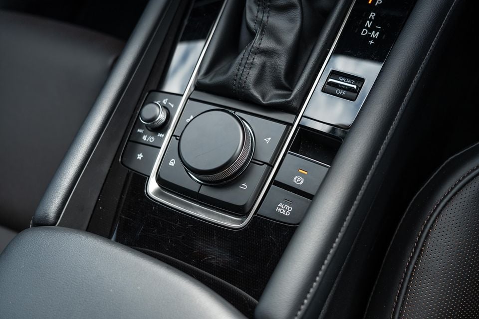 It won’t take long to notice how far away the infotainment system is on its perch atop the dashboard, however, nor will the fact that Mazda continues to rely on its centrally mounted rotary dial instead of touch.