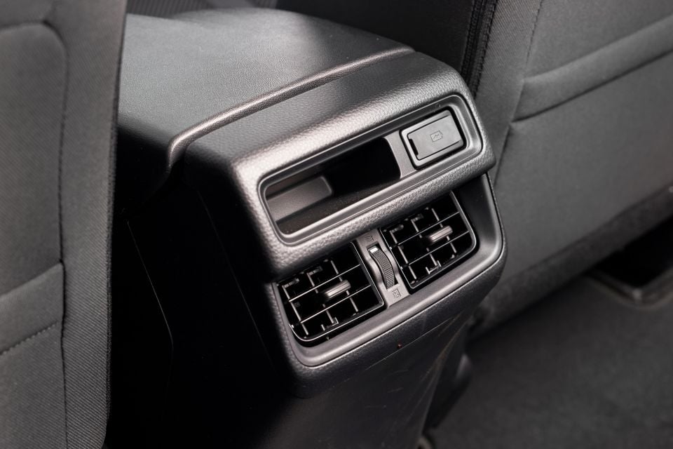 The second row is expectedly sparse, but there’s still plenty of space all around. There’s a pair of rear-facing air vents and a single USB-C port for passengers to use, but no fold-down centre armrest nor additional cupholders beyond bottle holders in the door cards.