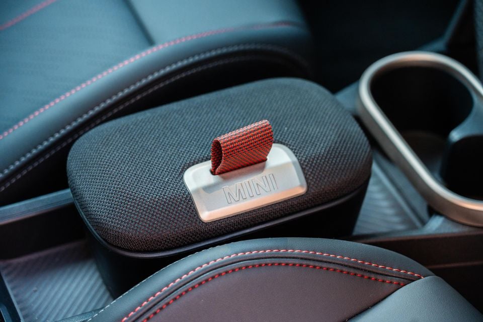 Though the cabin feels quite airy, storage options are somewhat limited. There’s a passenger-side glovebox and slim door bins, while the centre console houses two cupholders and Mini’s unique lidded storage box.