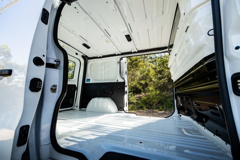 There is no overhead storage and no vanity mirrors, but you do get an auto-dimming rear-vision mirror, which is unusual for a van like this. There’s also a wide-view reflective mirror to help you see beside the van from the driver’s seat, because there’s no rear side window as standard.