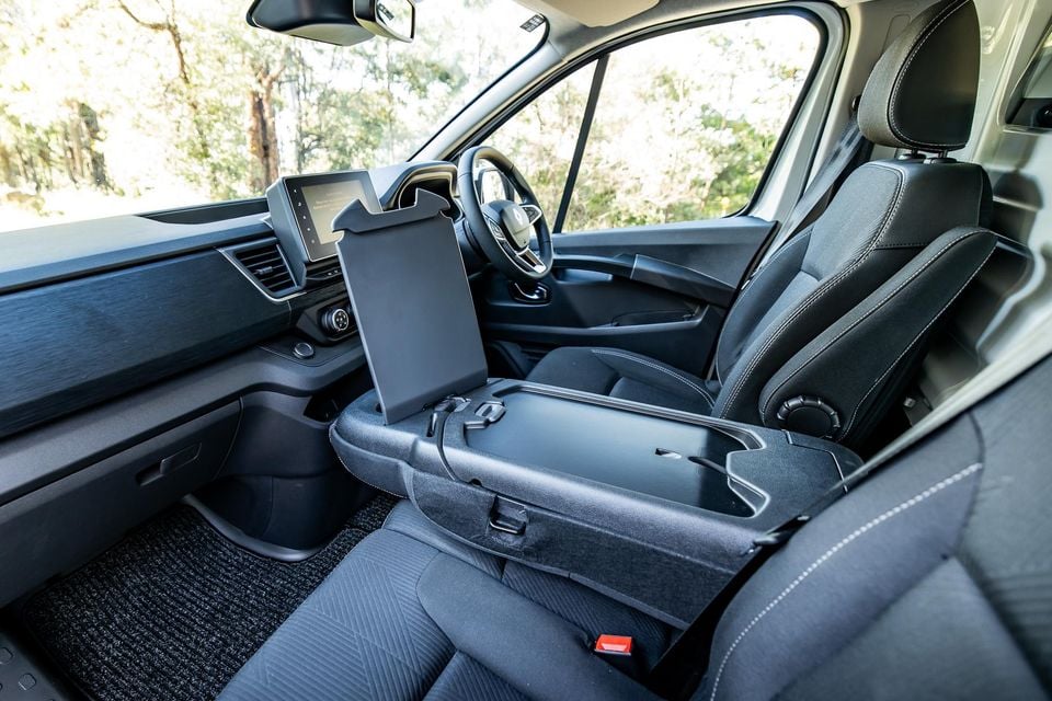 One of my favourite interior elements of this van is the middle seat – which can fold down if you don’t need it, allowing yourself to have a workspace between you and your passenger.