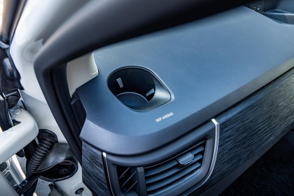 The bulkhead area includes a hidden hatch at the bottom with a magnetised flap, which is handy if you need to load through longer items like conduit. You can even load stuff pretty much all the way to the firewall, courtesy of a flap that opens up on the seat base (but the front window seat won’t be usable if you do that).