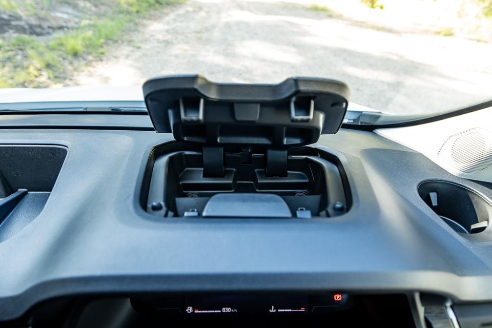 Other storage solutions throughout the cab are good too, with cupholders on top of the dashboard, an open section above the media screen in the middle of the dash with USB ports, and a closable section above the instrument binnacle – although it is a little bit finicky to open.
