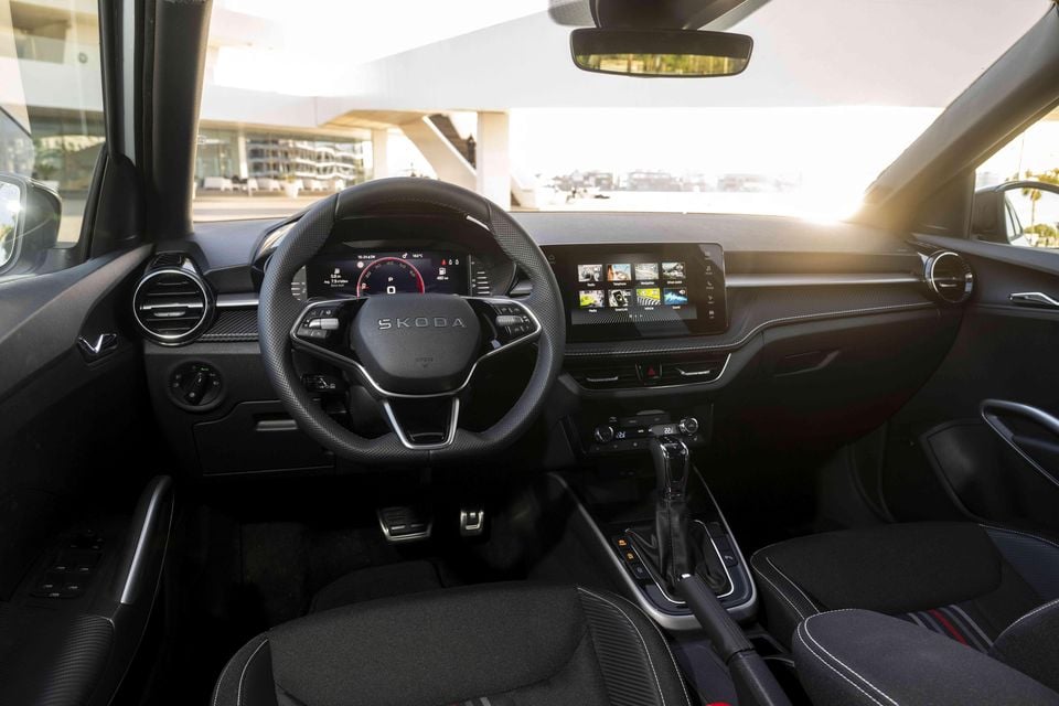 Skoda further adds stainless-steel pedals and some black aluminium sill plates to the Fabia 130, to lift its interior ambience beyond that of a Monte Carlo.