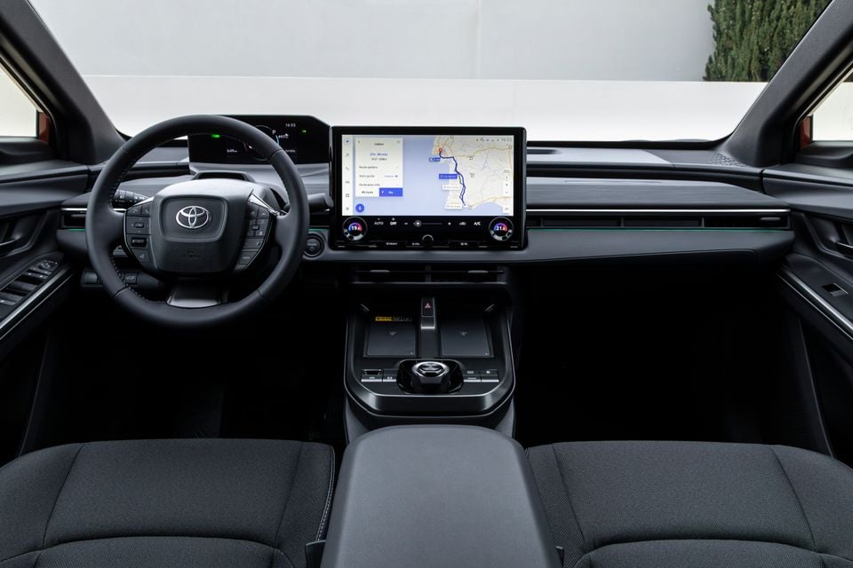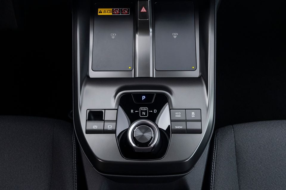 The centre console is a sensible affair, as well, with two wireless charging pads on top, ahead of the same rotary drive selector used by the bZ4X. There’s a pair of cupholders in the middle, and the broad central armrest is hinged on both sides, so it’s just as easy for the driver to open as the passenger.