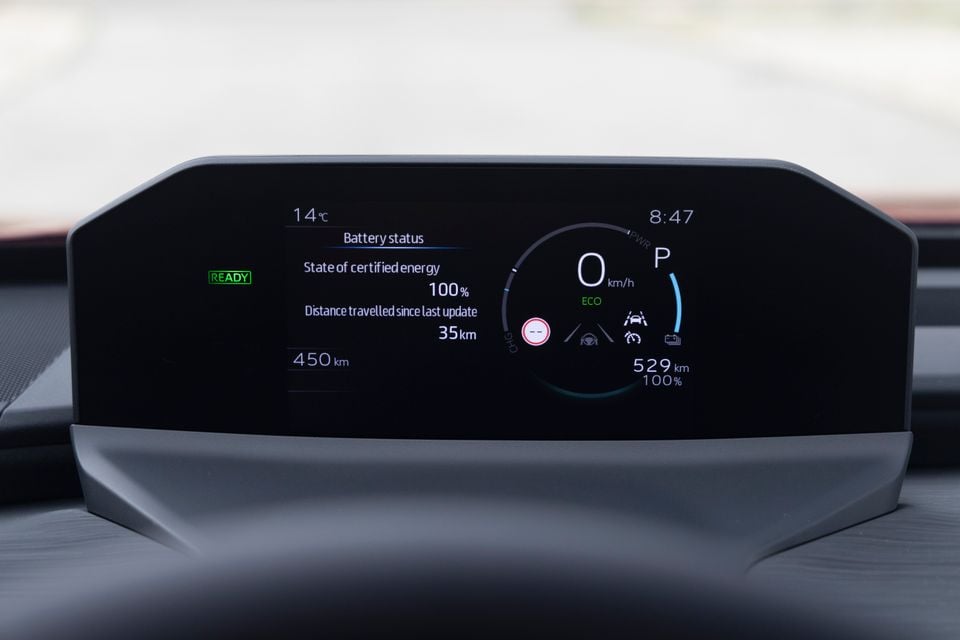 You get four levels of selectable energy recuperation via chunky paddles on the back of the steering wheel. In its lowest setting, there’s an effective sail mode that’s good for highway driving. However, when it’s dialled the other way, it stops short of offering a true one-pedal driving feel.