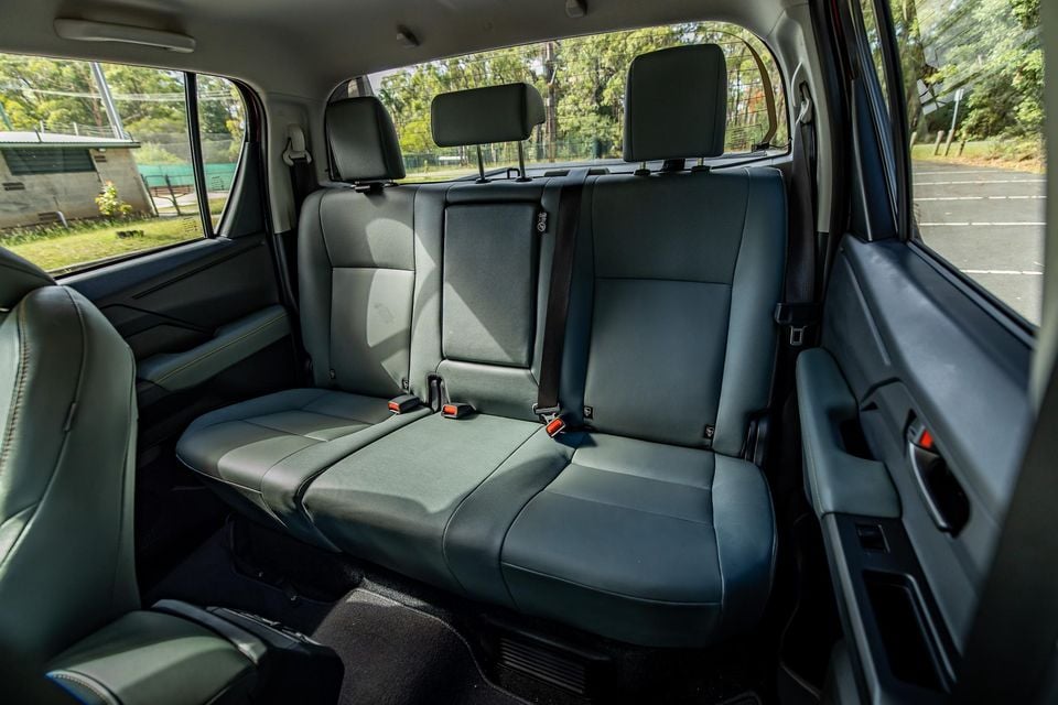 For a six-foot (182cm) adult behind their own driving position, it’s tight. Toe room is limited, knee room is compromised, and headroom is also tighter in this ute than in most others in the segment. Plus Toyota still hasn’t done away with those stupid fixed overhead grab handles that seem like a concussion waiting to happen for a taller rear-seat rider.