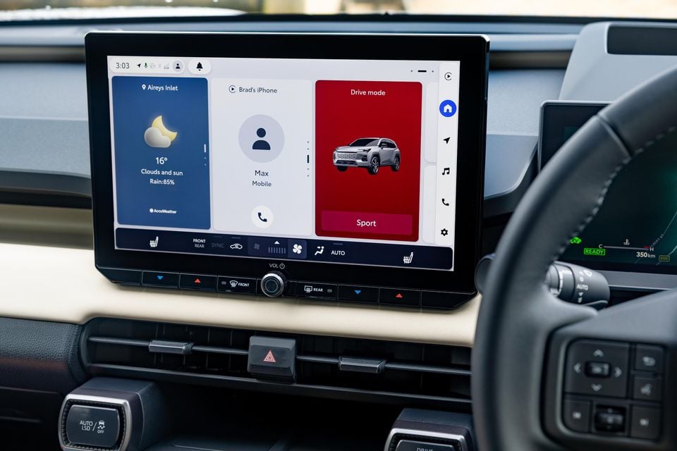 Moving across, the central infotainment system measures 10.5 inches in base grades, with Edge variants and higher upping that to 12.9 inches. All versions get embedded and connected satellite navigation, wireless Apple CarPlay and Android Auto connectivity, DAB+ digital radio, and Spotify integration.
