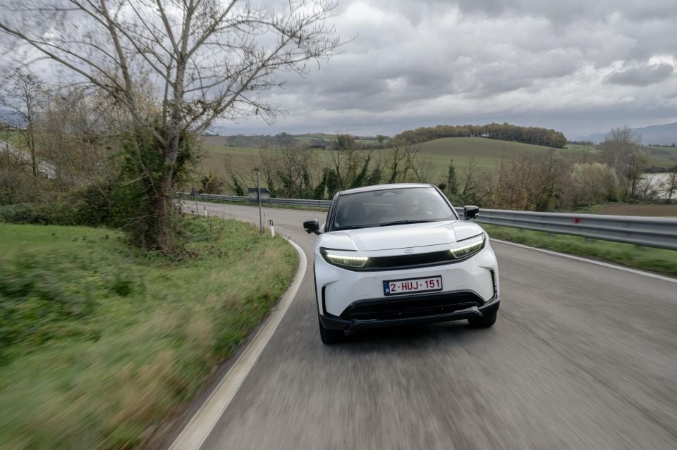 Neither the lighter single-motor nor heavier AWD variants are better at dealing with this stuff, so don’t go expecting added weight to settle the Toyota down on its springs.