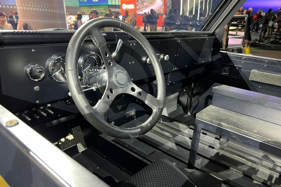 The lightweight aluminium body sits on an aluminium chassis and 285/70R17 mud terrain tyres on aluminium rims provide the traction. The chassis by itself weighs just 134kg and utilises four-wheel independent hydropneumatic suspension with quick disconnect sway bars to achieve 254mm of wheel travel.