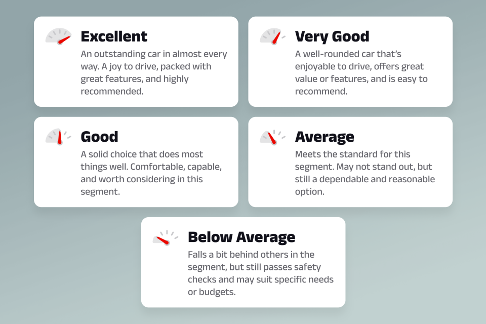 As such, we have come up with two separate rating systems, both of which will evolve over time. The first iteration of our new ratings sees our human subjective rating remove any numerical reference. There is no longer a 7.4 or 8.5. We are now using simple words to convey the author’s overall thoughts on the car.
