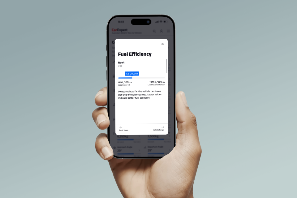 To better understand how this works, say we have a Toyota RAV4 Hybrid AWD that consumes 4.8L/100km. That fuel efficiency number will now be put on a scale that shows the best option in the mid-size SUV segment at one end and the worst option in that category at the other end. Readers can see for themselves what the figures show across many other data points to decide what is important to them and what is not.
